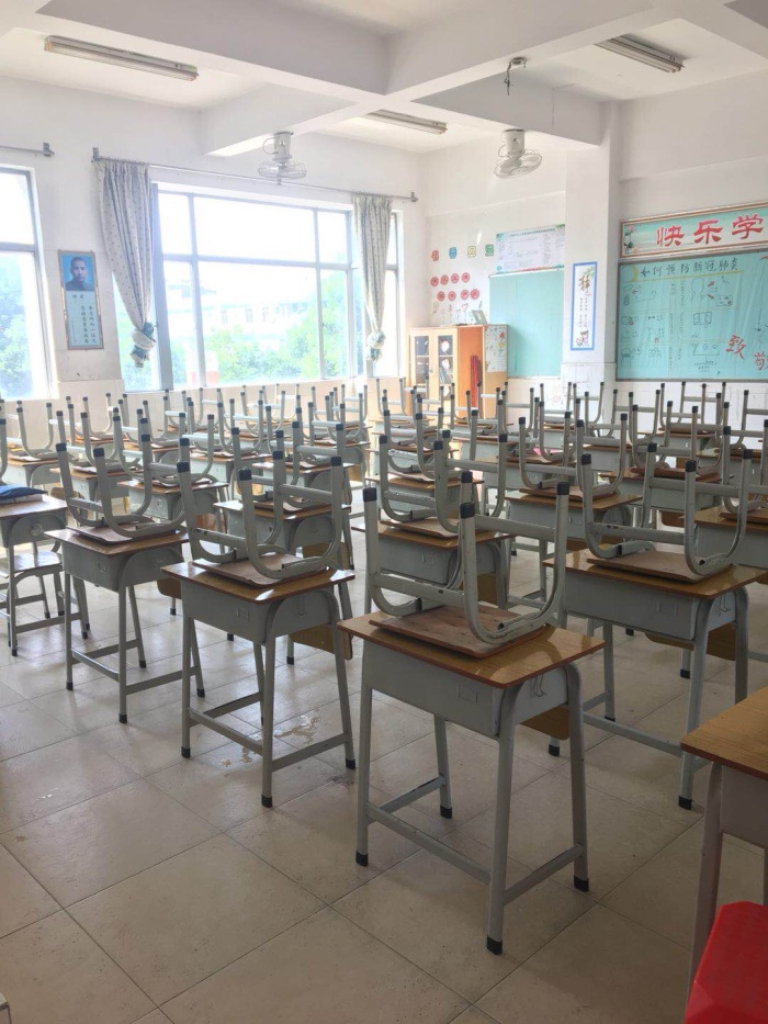 沐浴著晨光,身披黃色志愿服,老師們拿起清潔工具,開始了校園的清潔。掃地、打水、拖地、擦課桌椅、窗戶黑板、擦墻壁臟跡、整理圖書角……大家分工明確,不放過任何一個死角。盡管有的教室布滿灰塵,盡管汗流浹背,大家也都沒有停下手中的勞動,就像打掃自己的家一樣用心。教室里、樓道內(nèi)都留下了老師們最美的身影。清潔活動中,有的班級攜手熱心家長,共同勞動,為校園的美麗增添一份光彩。在互幫互助中,老師們完成了校園的清掃,煥然一新。