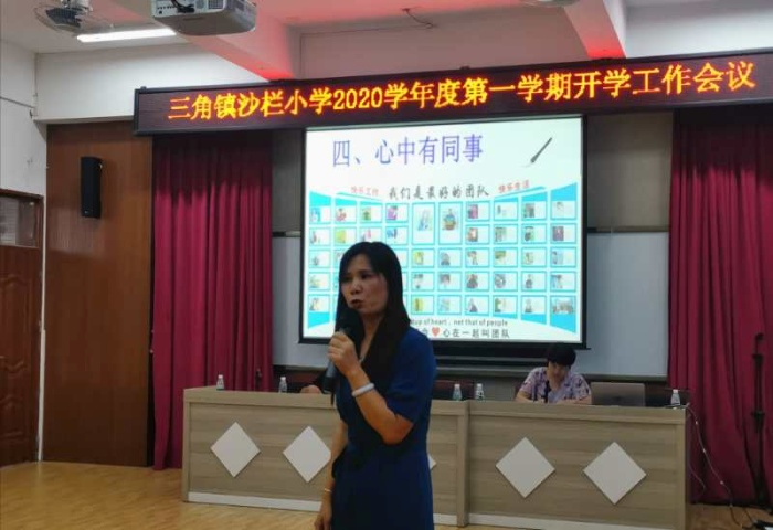 首先,張老師介紹新的行政隊伍,并對新學(xué)期的少先隊工作提出新的要求。然后,各部門負責(zé)人圍繞學(xué)校工作目標(biāo),介紹了各自的工作思路。教導(dǎo)處黃桂容主任詳細地解讀了《沙欄小學(xué)教學(xué)常規(guī)管理細則》,德育處霍廣耀主任就開學(xué)后需要關(guān)注學(xué)生心理健康教育做了詳細安排,總務(wù)處李權(quán)標(biāo)主任鼓勵老師們積極參與愛國衛(wèi)生清潔大行動,黎文輝副校長對在開學(xué)前收集學(xué)生的健康申報卡和家長承諾書作了明確的安排。緊接著崔煥英校長以“凝心、聚力、啟航”為主題,進行了師德師風(fēng)培訓(xùn)。在師德師風(fēng)培訓(xùn)中,崔校長鼓勵老師們多鍛煉,要有健康的身體,強健的體魄才能更好的完成教育教學(xué)工作,要求全體教職工心中要有學(xué)生,給予學(xué)生更多的耐心與愛心,一定要嚴(yán)格遵守師德標(biāo)準(zhǔn),嚴(yán)守底線,不能體罰學(xué)生。最后,崔校長還分享了“人在一起叫聚會,心在一起叫團隊”“學(xué)校要管人,管人要管心,管心要知心,知心要關(guān)心,關(guān)心要真心?!钡墓芾砝砟睿瑘F結(jié)的力量確實是無法估量的。