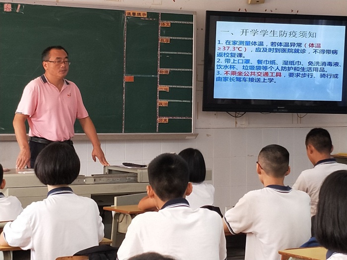 該校德育處張成斌主任發(fā)言,他對同學(xué)們新學(xué)期的學(xué)習(xí)提出了明確要求:一是要嚴格執(zhí)行各項常態(tài)化疫情防控要求,按各項指引規(guī)范學(xué)習(xí)和生活;二是要消除假期綜合癥,將全部精力轉(zhuǎn)移到學(xué)習(xí)上來;三是不要沉迷網(wǎng)絡(luò),遠離手機游戲;四是要養(yǎng)成愛公物、講文明、重安全、愛集體的好習(xí)慣,遵規(guī)守紀,做一個文明沙中人。各班召開班會《開學(xué)第一課》。班主任和同學(xué)們一起學(xué)習(xí)了開學(xué)防疫須知、社會主義核心價值觀、《中小學(xué)守則》、人人參與創(chuàng)文等內(nèi)容;還發(fā)動學(xué)生要和家長一起,觀看當天晚上中央一臺播出的《開學(xué)第一課》。