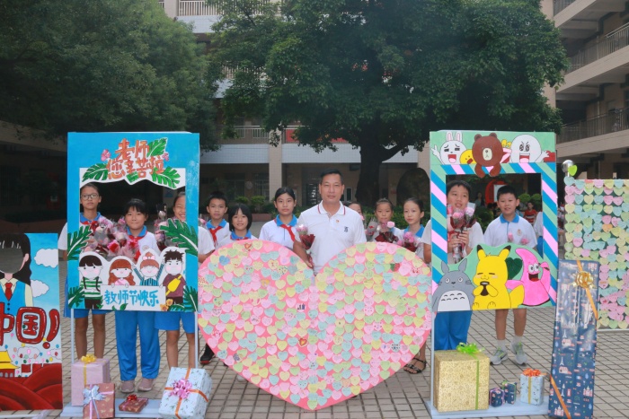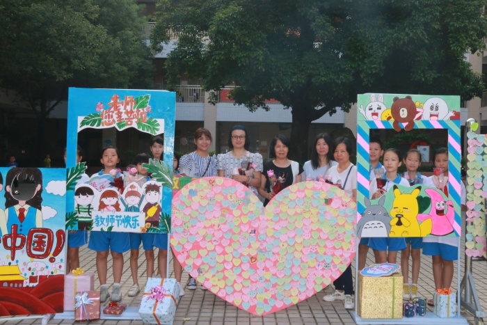 9月8日-10日,三角小學(xué)開展了“心心相印、紙短情長、心花怒放、青春永駐”等一系列主題活動,學(xué)生們用彩色顏料在KT板上按出小愛心,表達了對老師的感恩愛戴之情;學(xué)生們在彩色心形便利貼上寫下對老師們說的心底話、祝福語,表達了對老師的尊敬感激之情;有些學(xué)生向老師獻上了玫瑰花,還有部分學(xué)生自發(fā)地向老師敬茶,表達了對老師的關(guān)心之情?;顒悠陂g,老師們紛紛在制作精美的慶祝展板前合影留念,成為了校園里一道最靚麗的風(fēng)景線。桃李不言,下自成蹊。同學(xué)們一句簡單的話語,一張簡單的卡片,用實際行動向老師們表達由衷的敬意,讓老師們度過了一個難忘又愉快的教師節(jié)。