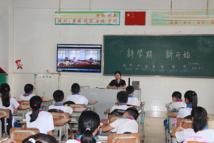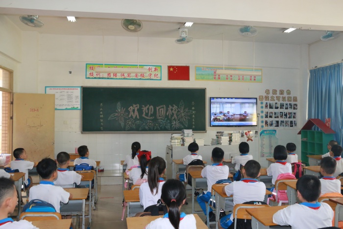 出于疫情防控需要,三角小學(xué)新學(xué)期開(kāi)學(xué)典禮通過(guò)釘釘視頻會(huì)議的形式進(jìn)行,由許嘉天主任主持,陳見(jiàn)洪校長(zhǎng)、王輝副校長(zhǎng)和三角公安分局沙欄派出所梁吉慶警官出席典禮,師生們?cè)诟靼嘟淌艺J(rèn)真觀看。