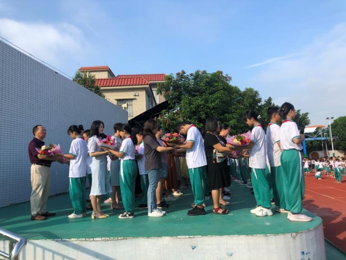 活動的第一個(gè)環(huán)節(jié),學(xué)生們手捧崔煥英校長為各位老師精心定制的鮮花,滿懷敬意地獻(xiàn)給可親可敬的老師。全校48位老師接過代表學(xué)生們真摯的祝福、衷心的感謝的鮮花,美麗的笑容在他們臉上綻放,幸福的感動在他們心中流淌。第二個(gè)環(huán)節(jié),由全校學(xué)生齊唱著《感恩的心》,以表達(dá)對老師諄諄教誨的感激之情,場面十分震撼。