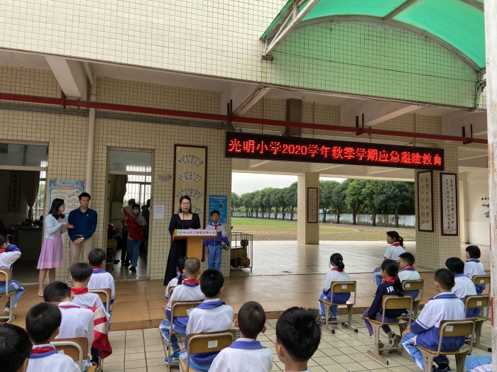 光明小學德育主任林秋影集中全校師生在操場向師生宣傳應急避險教育,林主任從提高交通安全意識、如何預防綁架侵害、在家的安全防御知識,如何報警等五個方面對學生進行安全教育,她希望全體師生以此次應急避險教育為契機,牢固樹立“安全第一”的意識,保護生命、珍惜生命、熱愛生命,提高自己面對突發(fā)事件時的應變能力和生存能力,穩(wěn)步推進“護校安園”的建設。