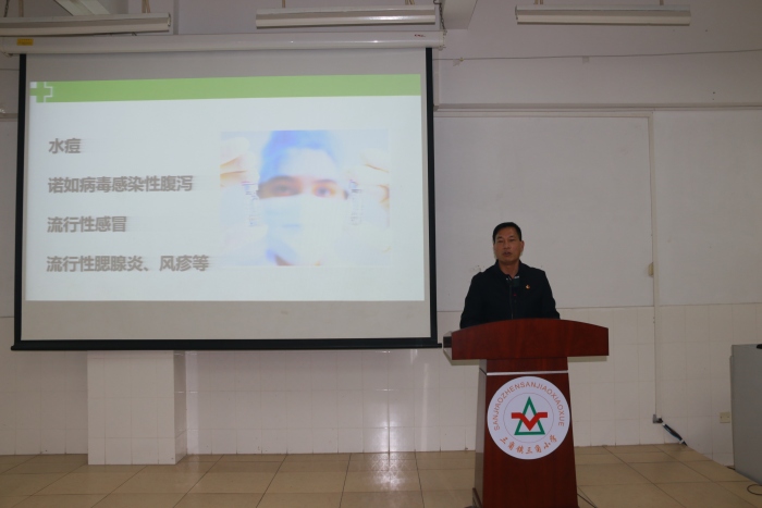 緊接著,陳校長(zhǎng)以《學(xué)校冬季常見(jiàn)傳染病及防控要求》為題,從學(xué)校冬季常見(jiàn)傳染病、常見(jiàn)傳染病隔離期限及疫情報(bào)告標(biāo)準(zhǔn)、智立方管理平臺(tái)預(yù)警處理流程三個(gè)方面詳細(xì)解讀了當(dāng)前學(xué)校傳染病的形勢(shì)與任務(wù),并從傳染病的病原學(xué)、流行病學(xué)特征等方面為大家介紹了學(xué)校常見(jiàn)的水痘、諾如病毒感染性腹瀉、流行性感冒、流行性腮腺炎、風(fēng)疹等傳染性疾病的一般知識(shí)和防治措施,為進(jìn)一步做好學(xué)校衛(wèi)生工作提供了非常好的建議和思路。