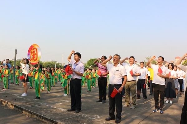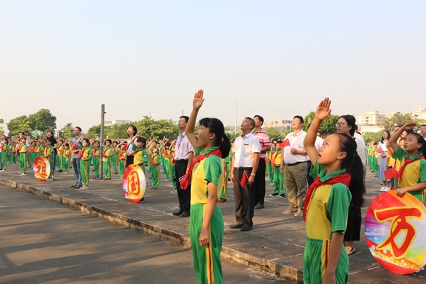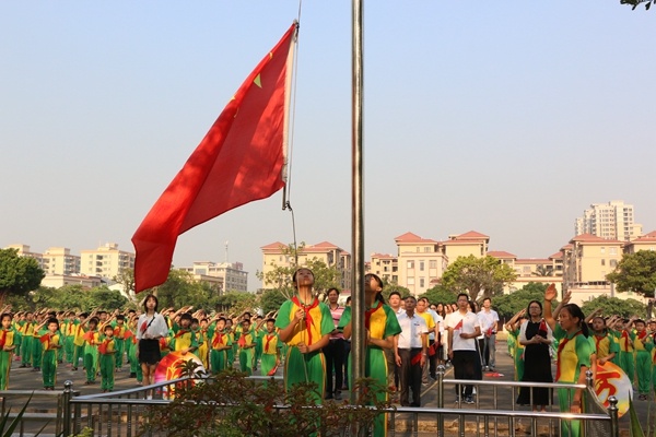 然后由莫文杰校長致辭,莫校長勉勵同學們一定要牢記國家主席習爺爺?shù)膰谕?,用心學習和踐行24字社會主義核心價值觀,胸懷祖國,勤奮學習,努力掌握現(xiàn)代科學技術,爭做有理想,有道德,有文化,有紀律的四有新人,爭做新時代的好少年,一定要繼承和發(fā)揚自強不息的民族精神,奮力拼搏,力爭用自己的激情、汗水和辛勞,把偉大的祖國建設得更加美好!衷心祝愿我們的祖國更加繁榮昌盛,祝愿全國人民永遠幸福安康!