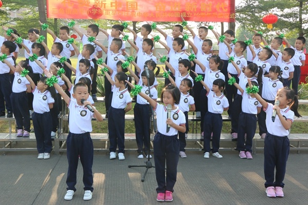 接著,由一(1)班的小同學帶來朗誦《大?!?,表達了莘莘學子真切的愛國心;五(1)班同學帶來合唱歌曲《雨花石》,同學們個個聲情并茂,動聽悠揚的旋律配上輕快的動作,余音繞梁、歌聲回蕩,唱出了對祖國母親最誠摯的祝福。