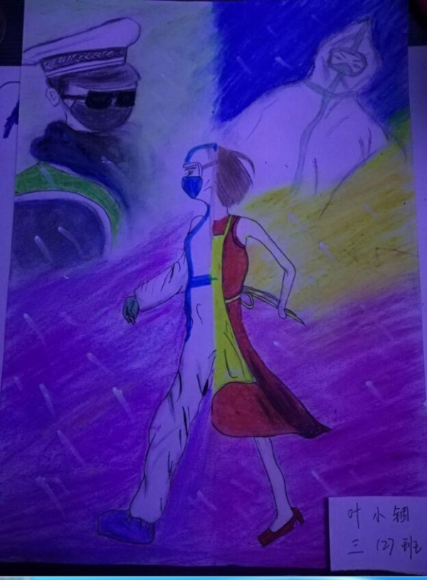 選手們用畫筆禮贊戰(zhàn)疫感人事跡,用藝術(shù)謳歌最美“逆行者”,創(chuàng)作出一幅幅振奮精神、鼓舞士氣、傳播積極向上正能量的優(yōu)秀作品。三(3)班的劉祥羽的作品《與死神搶時(shí)間》描繪出醫(yī)護(hù)人員緊急救護(hù)的場景,二(3)班楊桂珍的作品《加油》用獨(dú)特的方式提醒大家做好防護(hù)。選手們的作品內(nèi)容充實(shí),感染力強(qiáng),主要圍繞在疫情防控一線的醫(yī)務(wù)人員和其他工作人員加油打氣,為“逆向而行”的先鋒致敬,向他們送上真摯的祝福:“叔叔阿姨加油!我就在您的身后!”