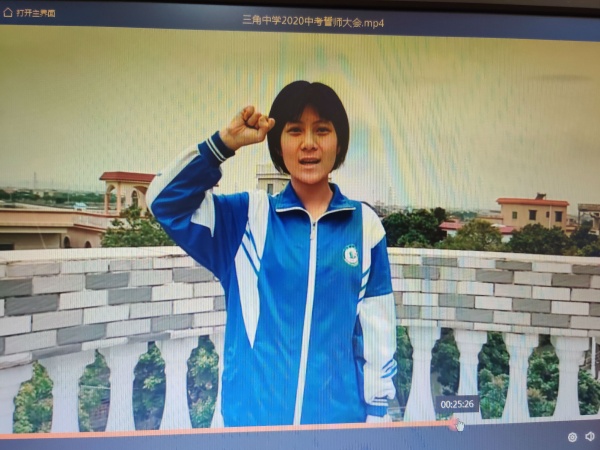 初三級(jí)各班也派代表錄制宣誓的視頻,緊握右拳,鏗鏘有力地宣誓,表明決戰(zhàn)中考的決心。