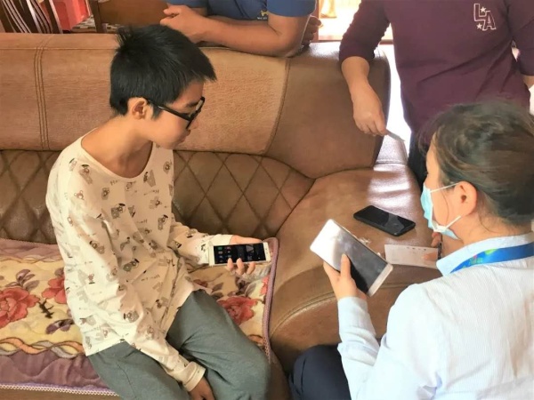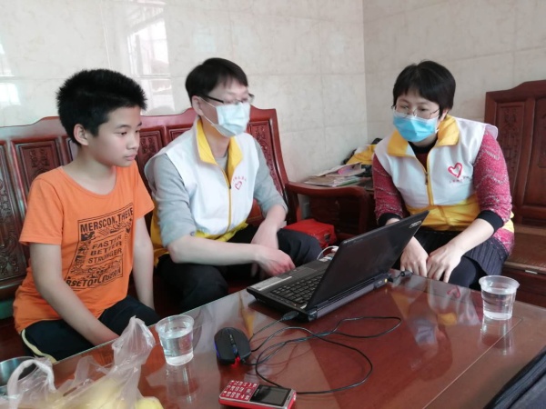 首先是就讀初二的張同學(xué)家,志愿者為他安裝好閑置電腦后指導(dǎo)學(xué)生使用釘釘軟件。接著來到初一的黃同學(xué)家,移動(dòng)公司為其安裝了寬帶并免費(fèi)提供兩個(gè)月的網(wǎng)絡(luò)。志愿者正在電腦前指導(dǎo)學(xué)生如何接收作業(yè)、上交作業(yè)。另外一名初一的梁同學(xué),收到了一臺(tái)智能手機(jī),移動(dòng)公司幫他開通學(xué)習(xí)流量卡,實(shí)現(xiàn)線上學(xué)習(xí)不斷網(wǎng),保證線上教育正常進(jìn)行。