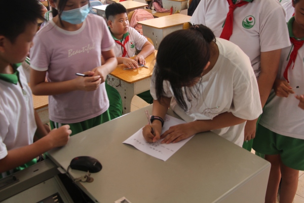 班會課的最后,發(fā)出“保護知識產(chǎn)權”的倡議書,學生們在倡議書上簽下自己的名字,做出自己的承諾,這進一步提高了抵制不良文化的能力,更讓學生們對自身責任有了更深的認識。