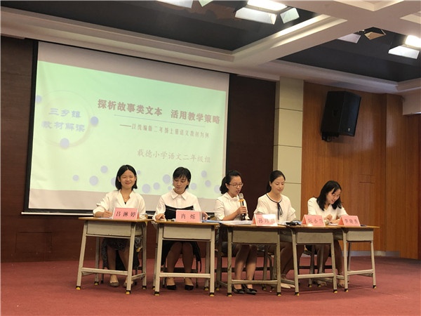 上午8時(shí)20分,活動(dòng)準(zhǔn)時(shí)開(kāi)始,先由白石環(huán)小學(xué)兩位低年級(jí)語(yǔ)文老師上教研課。林金梅老師一堂《大小多少》的識(shí)字課,以形式多樣的識(shí)字方法帶領(lǐng)學(xué)生暢游漢字王國(guó)。劉榮秀老師親切自然地和二年級(jí)的學(xué)生一起探究了《坐井觀天》中的故事寓意。接著,光后中心小學(xué)的一年級(jí)五位語(yǔ)文老師組成的團(tuán)隊(duì),以該兩堂課為課例,從“漢語(yǔ)拼音”、“識(shí)字教學(xué)”、“閱讀教學(xué)”、“朗讀指導(dǎo)”、“口語(yǔ)交際”五個(gè)方面對(duì)部編版一年級(jí)教材進(jìn)行了解讀,充分地把握教材特點(diǎn),深入淺出地闡述教學(xué)與生活的相融性,課內(nèi)與課外閱讀的相長(zhǎng)性,有效地運(yùn)用教材,利用好書(shū)里書(shū)外的素材,讓學(xué)生收益最大化。載德小學(xué)二年級(jí)老師團(tuán)隊(duì)的《探析故事類(lèi)文本,活用教學(xué)策略》,從故事類(lèi)課文入手,解讀了二年級(jí)上冊(cè)教材。依據(jù)課程標(biāo)準(zhǔn)以及教材的相關(guān)要求,導(dǎo)出提升學(xué)生故事力是呈螺旋漸進(jìn)式的,要抓住每一次講故事的訓(xùn)練點(diǎn),巧妙利用親子閱讀,讓學(xué)生的講故事能力持續(xù)提高。該團(tuán)隊(duì)還以自身班級(jí)的實(shí)踐操作為例,闡明故事力提升具體的方法?;顒?dòng)的最后,三鄉(xiāng)鎮(zhèn)中心教研組組長(zhǎng)曹小燕老師做了總結(jié),指出此次活動(dòng)的異彩紛呈,課例的精彩,教材解讀的到位,體現(xiàn)了引領(lǐng)的高度性、精要性、實(shí)踐性。