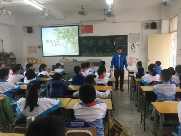 學(xué)校培養(yǎng)了一個(gè)又一個(gè)積極樂(lè)觀的學(xué)生。你瞧,三、四年級(jí)的學(xué)生正在認(rèn)真聆聽(tīng)《陽(yáng)光心態(tài)》主題班會(huì)的內(nèi)容。