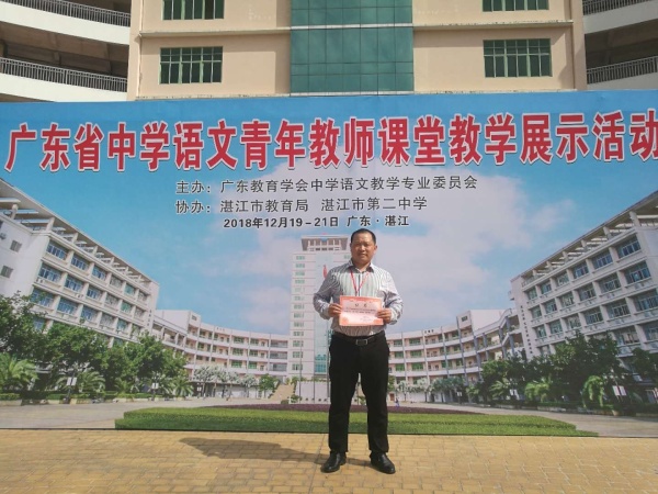 冬日暖陽(yáng),惠風(fēng)和暢。為期兩天的廣東省中學(xué)語(yǔ)文青年教師課堂展示活動(dòng)于12月20日到21日在書(shū)香浸潤(rùn)、風(fēng)景怡人的湛江市二中舉行。三鑫優(yōu)秀教師龔義民老師欣然領(lǐng)命,沉著比拼,一舉奪魁,隔山越水,再傳佳音。