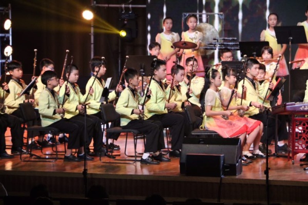 在音樂(lè)會(huì)中,光后中心小學(xué)的國(guó)樂(lè)團(tuán)在周清波老師的指揮下,充分演繹出了李復(fù)斌教授音樂(lè)敘事的少年英雄形象。二胡與琵琶的柔美與鏗鏘,詮釋了英雄少年的高雅與志存高遠(yuǎn)。大鼓與镲的雄壯與激昂,重點(diǎn)渲染了少年英雄驚天動(dòng)的豪情。特別于結(jié)尾處三次點(diǎn)睛總括,鼓樂(lè)齊鳴,把少年英雄的形象推到頂峰,震撼全場(chǎng),余音繞梁。這也是光后國(guó)樂(lè)團(tuán)自己光輝歷程的寫(xiě)照!