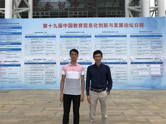 2019年6月26日-27日,第十九屆中國(guó)教育信息化創(chuàng)新與發(fā)展論壇暨教育信息化應(yīng)用成果展示交流活動(dòng),在山東煙臺(tái)國(guó)際博覽中心舉行。應(yīng)廣東省教育技術(shù)中心邀請(qǐng),我校教務(wù)處藍(lán)高龍副主任帶領(lǐng)師生團(tuán)隊(duì)及作品,作為廣東省參展單位進(jìn)行展示與交流。