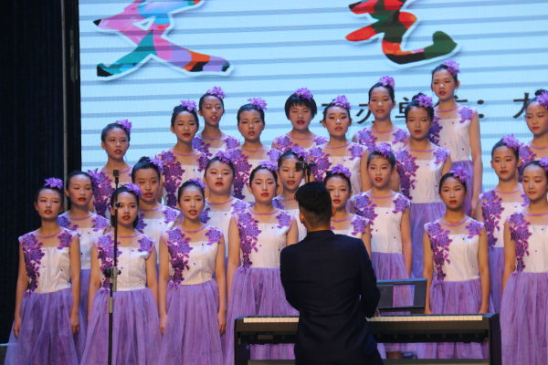 我校合唱隊姑娘們穿著淡雅的裙裝,自信優(yōu)雅地站在表演臺上,指導(dǎo)老師唐小林風(fēng)度翩翩地彈奏鋼琴,“啊,卓瑪……你像一只自由的小鳥歌唱在那草原上,你像春天飛舞的彩蝶,閃爍在那花叢中……”豐華中學(xué)合唱隊用飄逸靈動的聲音演繹了一首《卓瑪》,歌唱聲如同歌詞:像一杯甘甜的美酒,醉了太陽,醉了月亮!陶醉了在場所有人!緊接著,場景從遼闊飄逸的草原轉(zhuǎn)移到迷蒙月光下的果園里,合唱隊員們一首《葡萄園夜曲》,唱出了寧靜的夜空下異鄉(xiāng)人對家鄉(xiāng)葡萄園的無限思念。優(yōu)美的旋律、獨特的唱風(fēng)、天籟的聲音以及師生精準的配合,令所有評委和觀眾如癡如醉,嘖嘖稱贊。最終獲得初中組唯一一個一等獎!唐小林和全波兩位老師獲得“優(yōu)秀指導(dǎo)老師獎”稱號!真是可喜可賀!