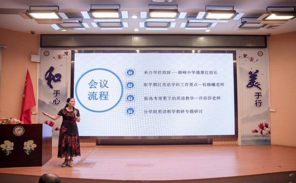 接著由區(qū)初中英語教研員杜曉曦老師解讀了新學(xué)期區(qū)英語學(xué)科工作要點(diǎn);再由區(qū)高中英語教研員許莎莎老師分析了新高考背景下的英語教學(xué),許老師提出,要提高學(xué)生聽力能力,口語能力及閱讀能力,要遵循新課改理念,培養(yǎng)學(xué)生綜合素質(zhì)和能力,促進(jìn)學(xué)生英語應(yīng)用能力的全面發(fā)展。