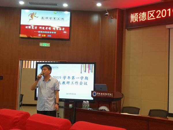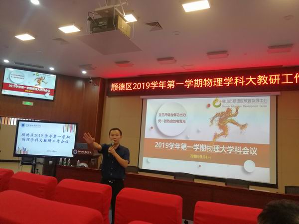 9月4日,區(qū)教育發(fā)展中心在順德京師勵(lì)耘實(shí)驗(yàn)學(xué)校召開了物理學(xué)科大教研工作會議,總結(jié)2018學(xué)年物理學(xué)科大教研工作,研討并部署新學(xué)期創(chuàng)新教研模式。參會人員有鎮(zhèn)(街道)初中物理中心教研組長,區(qū)屬初中學(xué)校物理科組長,普通高中物理科組長及各年級備等近100人。會議由發(fā)展中心物理教研員周璐老師主持。