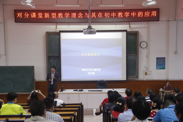 為了推進學(xué)校的品牌建設(shè)工作,實現(xiàn)我?!叭龑?dǎo)”課堂教學(xué)模式的升級蝶變,勒流街道新球中學(xué)擬引進“對分課堂”教學(xué)模式。10月24日,我校特意邀請了“對分課堂”教學(xué)模式的創(chuàng)始人――復(fù)旦大學(xué)社會發(fā)展與公共政策學(xué)院心理學(xué)系張學(xué)新教授,來我校為全校老師作《對分課堂新型教學(xué)理念及其在初中教學(xué)中的應(yīng)用》主題講座。活動由新球中學(xué)教研室古林海主任主持。