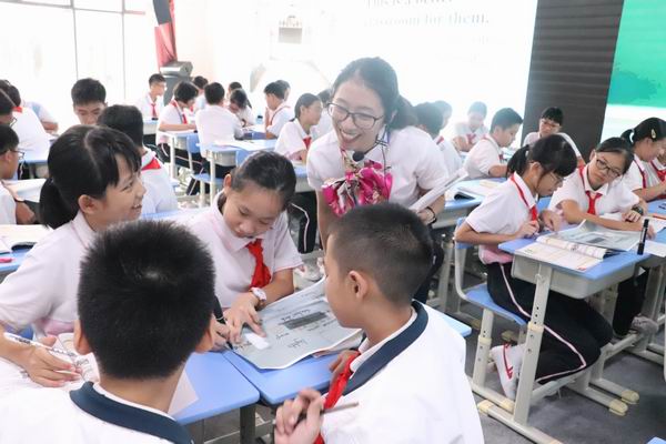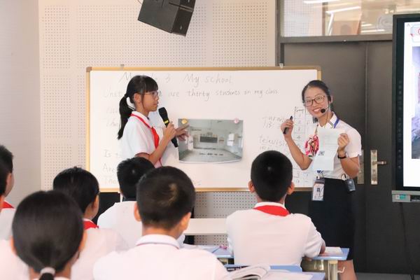 下午兩點半,伴隨著七年級8班同學的朗朗書聲,課例分享活動正式開始。成美初級中學楊麗英老師給大家?guī)砹?/span>Module 3 My School Unit 1 There are thirty students in my class的展示課。楊老師運用成美“三環(huán)五學”模式,逐步展開課堂教學,并在最后運用給山區(qū)孩子重新設計教室的活動鞏固了課堂知識,受到了與會教師的一致好評。