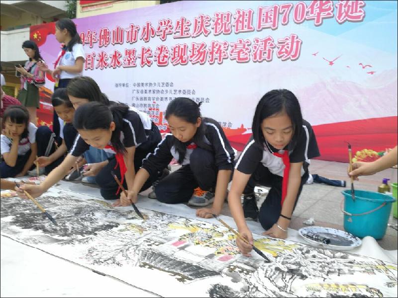2019年10月16日下午,佛山市小學(xué)生慶祖國(guó)70華誕百米水墨長(zhǎng)卷現(xiàn)場(chǎng)揮毫活動(dòng)在佛山南海石門(mén)實(shí)驗(yàn)小學(xué)舉行。本次活動(dòng)旨在引導(dǎo)廣大少年兒童以實(shí)際行動(dòng)向偉大祖國(guó)70周年生日獻(xiàn)禮,是進(jìn)一步落實(shí)習(xí)總書(shū)記關(guān)于學(xué)校美育工作的重要指示和充分展示我省學(xué)校美育成果,促進(jìn)兒童水墨教學(xué)工作再上新臺(tái)階的重要契機(jī)。通過(guò)本次活動(dòng),學(xué)生接受了愛(ài)國(guó)主義教育,激發(fā)了愛(ài)國(guó)熱情。