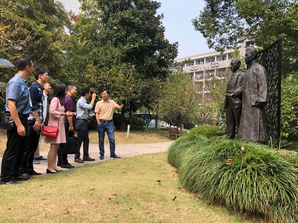 隨后,校辦副主任祝建清帶領(lǐng)更崗學(xué)員們參觀校園。校園簡(jiǎn)樸大氣,各個(gè)角落都藏著凝聚百廿年的校園文化,莊重而不失精致。