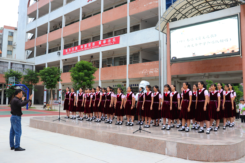 之后,由文華中學(xué)合唱隊(duì)領(lǐng)唱《育美之歌》,操場上空響起了優(yōu)美的文化旋律。在全場學(xué)生齊呼:“爭做身體健美,心靈純美,行為修美,求學(xué)篤美,與人和美,為事慧美的‘六美學(xué)子’!”的瑯瑯口號聲中,本次集團(tuán)日活動(dòng)圓滿結(jié)束。
