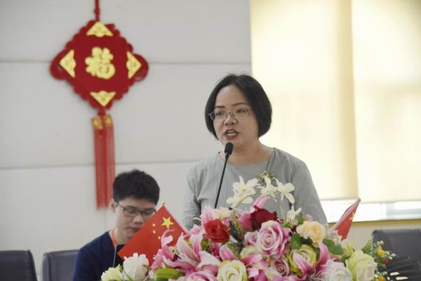 順德華僑中學(xué)黨總支書(shū)記吳劍平校長(zhǎng)用英語(yǔ)向大家致歡迎辭,對(duì)工作室學(xué)員、成員提出了三點(diǎn)希望:明確目標(biāo)、團(tuán)結(jié)一心;把握機(jī)遇、加強(qiáng)學(xué)研;成果豐碩、示范引領(lǐng)。