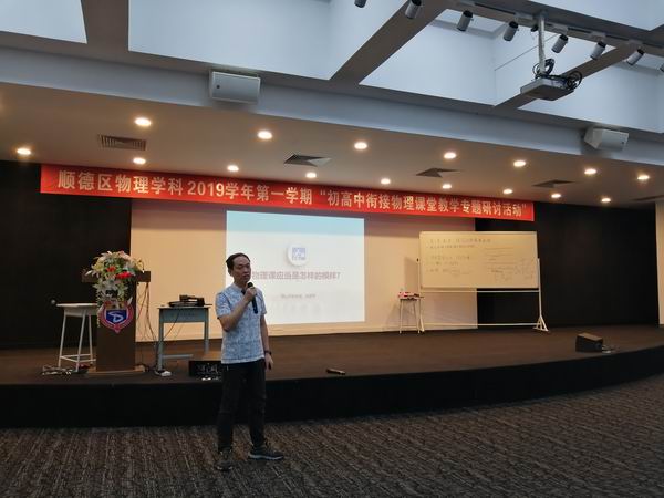 9月18日,順德區(qū)物理學(xué)科“初高中銜接物理課堂教學(xué)專題研討活動(dòng)”在廣東順德德勝學(xué)校順利開展,參加活動(dòng)的人員有佛山市教研室物理教研員朱建平教授、順德區(qū)教育發(fā)展中心教研室任富華副主任、100多位初高中物理教師?;顒?dòng)由順德區(qū)物理教研員周璐老師主持。