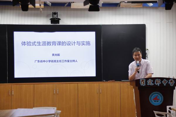 兩節(jié)研討課結(jié)束后,由廣東省第三批名班主任工作室主持人、廣東省思想政治優(yōu)質(zhì)課大賽現(xiàn)場授課特等獎獲得者黃光毅老師做課例點(diǎn)評以及進(jìn)行《體驗(yàn)式生涯課堂的構(gòu)建》專題講座。在講座過程中,黃老師從生涯公開課現(xiàn)狀掃描、生涯活動體驗(yàn)的五大原則等方面對體驗(yàn)式生涯規(guī)劃課堂的構(gòu)建做了深入淺出的講座。