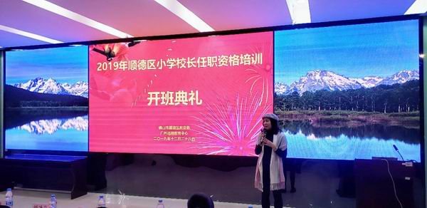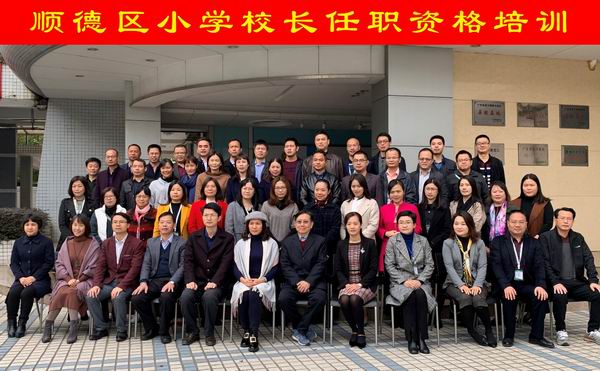 2018 年12月28日上午, 順德區(qū)小學校長任職資格培訓班在順德區(qū)教育發(fā)展中心B座一樓報告廳首次集中培訓。廣州遠程教育中心程庭喜教授、順德區(qū)教育局冼彌冬副局長、順德區(qū)教育局組織人事科劉進華科長等領導和嘉賓出席了開班典禮,全區(qū)45名小學校長參加本次培訓。