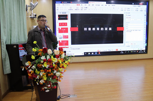 林慶河副校長(zhǎng)介紹倫教小學(xué)創(chuàng)客教育開(kāi)展情況以及星創(chuàng)空間未來(lái)建設(shè)設(shè)想