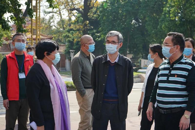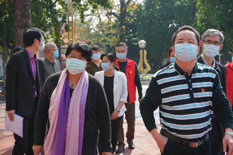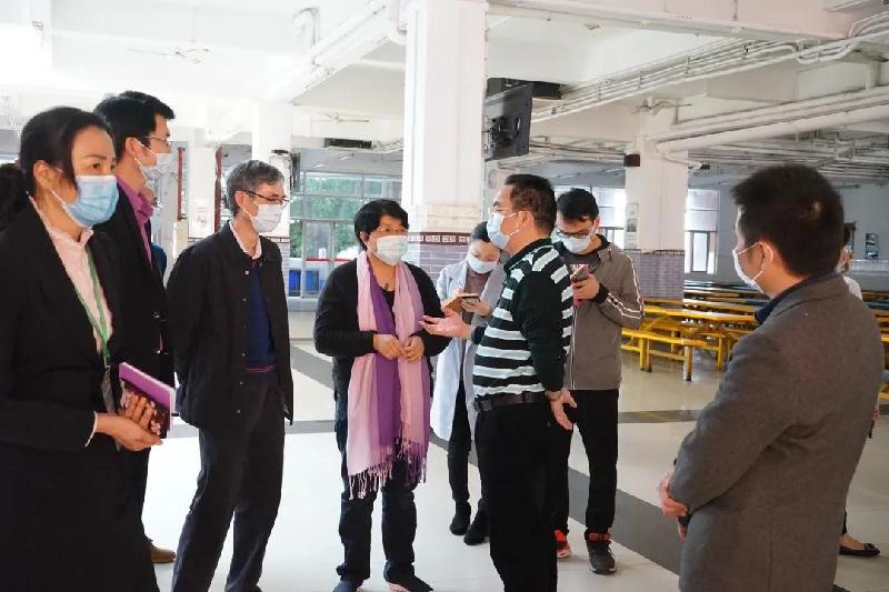 順德區(qū)副區(qū)長(zhǎng)、容桂街道黨工委書記劉國(guó)興(右3)等領(lǐng)導(dǎo)到容山中學(xué)檢查疫情防控工作