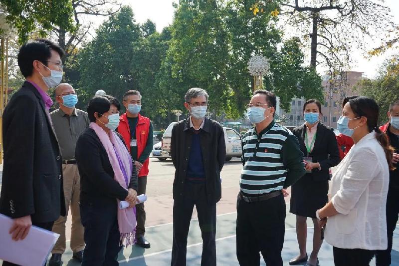 2月22日下午,順德區(qū)副區(qū)長(zhǎng)、容桂街道黨工委書記劉國(guó)興、順德區(qū)政協(xié)副主席譚振東等領(lǐng)導(dǎo)到容山中學(xué)檢查疫情防控和開(kāi)學(xué)準(zhǔn)備工作。容山中學(xué)校長(zhǎng)區(qū)淑玲代表學(xué)校匯報(bào)了相關(guān)工作。區(qū)政協(xié)、區(qū)教育局相關(guān)科室、容桂街道教育局、容桂街道社區(qū)衛(wèi)生服務(wù)中心、容新社區(qū)居委會(huì)等單位參加了此次檢查工作。