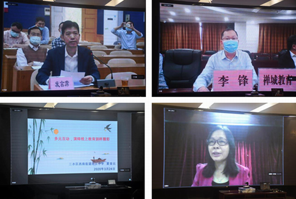 隨后,南海區(qū)西樵鎮(zhèn)教育局、禪城區(qū)南莊三中、三水區(qū)西南街道北江小學(xué)、高明區(qū)沛明實驗學(xué)校陳老師分別作為鎮(zhèn)街、學(xué)校、教師層面介紹線上教育的措施和成效。