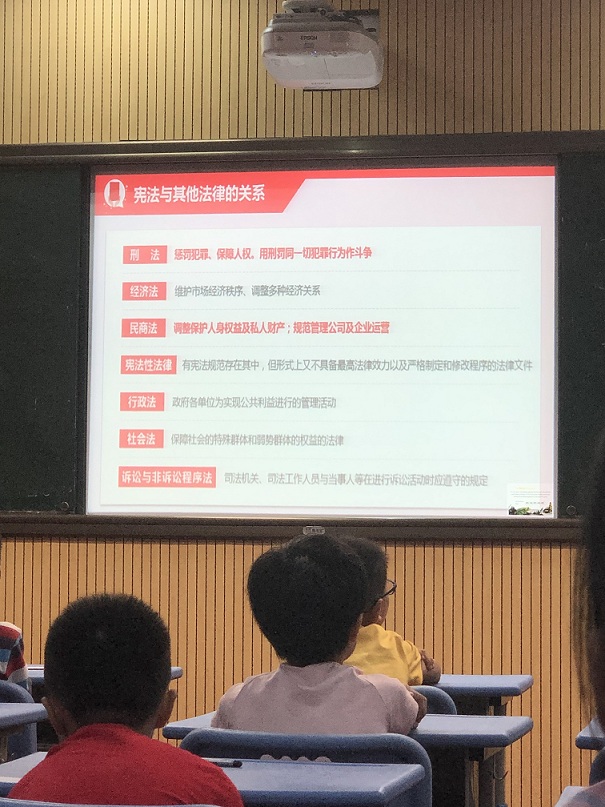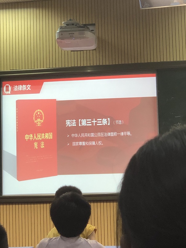 在此次課堂過程中,律師們用幽默風(fēng)趣的語言吸引了孩子們的注意。采取用問題引導(dǎo)孩子們的方式,漸漸地引領(lǐng)孩子們進(jìn)入法律的殿堂之中,最終莊嚴(yán)地走到憲法面前,首先,律師們通過詢問孩子們對(duì)于法律的了解程度、對(duì)于憲法規(guī)定的基本權(quán)利的種類以及對(duì)于其他下位法如刑法具體的規(guī)定內(nèi)容,逐步加深孩子們對(duì)于法律的知覺,從一開始的在遠(yuǎn)方慢慢走近,最后真正地感受到法律的關(guān)懷,通過這一個(gè)過程,相信法律不再像同學(xué)們一開始認(rèn)為地遙不可及,而是時(shí)時(shí)刻刻圍繞在身邊并且無時(shí)無刻在保護(hù)著公民權(quán)利與自由。