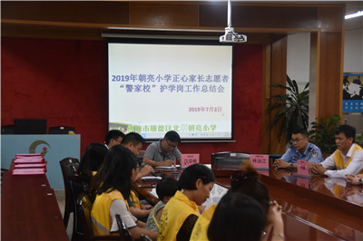 7月2日晚上7:40,大雨初晴,盡管道路積水潮濕,但絲毫澆滅不了我?!熬倚!弊o學(xué)崗家長志愿者們的熱情,家長們紛紛集中到學(xué)校三樓會議室參加本學(xué)期朝亮小學(xué)“警家校”護學(xué)崗家長志愿者總結(jié)會,會議由張湛浩主任主持。