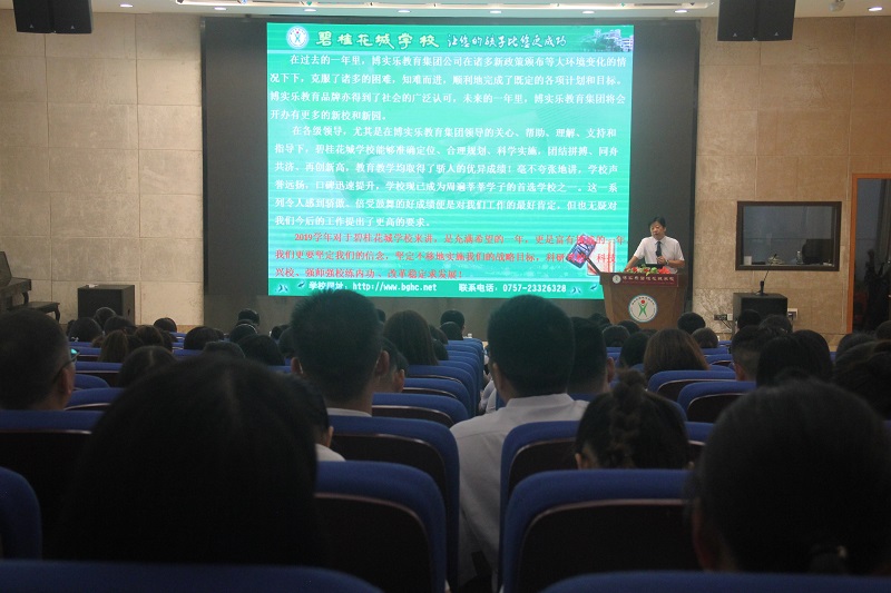 賀總首先介紹了我校暑假期間教師培訓、招生、夏令營、畢業(yè)游、校園翻新等工作的相關(guān)情況,并回顧了過去一年里博實樂教育集團的發(fā)展變化,總結(jié)了過去一年碧桂花城學校所取得的驕人成績。這些成績讓全體教職員工倍受鼓舞,深感驕傲。