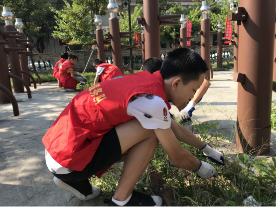 在馬東村團(tuán)委書記的帶領(lǐng)下,志愿者們四人一組,揮動手中工具,鏟除路邊雜草,掃除路面垃圾。鮮艷的旗幟在秋風(fēng)里高高飄揚(yáng),大紅色的志愿者馬甲耀眼奪目,現(xiàn)場氣氛非常熱烈。志愿者們發(fā)揚(yáng)不怕苦、不怕累、不怕臟的精神,對馬東村的主干道路和健身公園周圍進(jìn)行徹底的清掃。