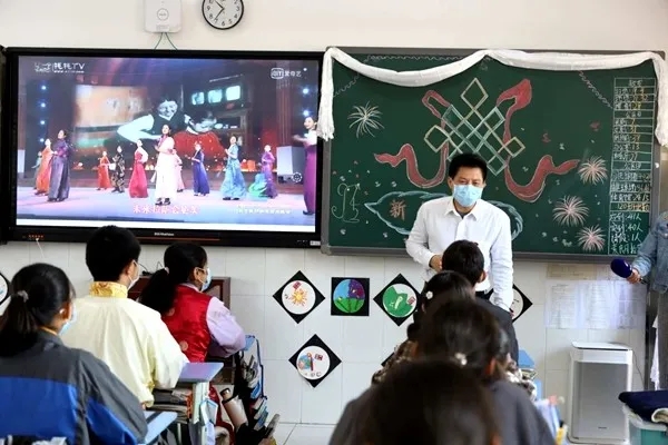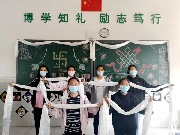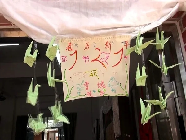 學(xué)生們一早起床后穿好了漂亮的藏服,忙碌著布置起教室、宿舍,門口掛上新的哈達,黑板上寫滿了新年的祝福,跟遠在西藏的家長視頻拜年,祝愿家人身體健康,祖國繁榮富強,班級的迎新活動中,載歌載舞,用歌聲迎接藏歷鐵鼠新年的到來。