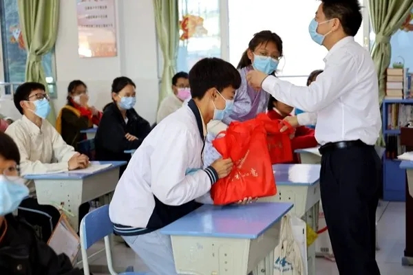 隨后,順德區(qū)區(qū)長彭聰恩來到校園,慰問了西藏班的學(xué)生,給每一位西藏班的同學(xué)帶來了新年的禮物,有課外閱讀書籍、文具和食品;并跟同學(xué)進行親切的交談。