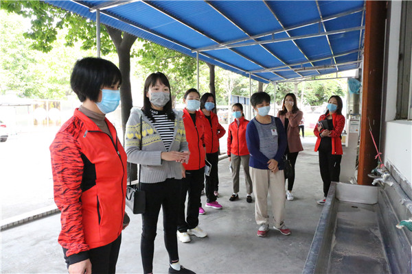指導組在龍斌校長的帶領下,分別巡視了隔離觀察室、防控物資儲備室、飯?zhí)眉敖淌业仁覉?,了解學校消毒用品儲備和口罩保障的情況。幾位醫(yī)生耐心地提出了學校室場消毒的一些要求,強調培養(yǎng)學生良好的衛(wèi)生習慣至關重要,要勤洗手、多通風、戴口罩,并就消毒用品的正確使用、廢棄口罩的回收、應急預案的流程等工作都進行了專業(yè)的指導和培訓。
