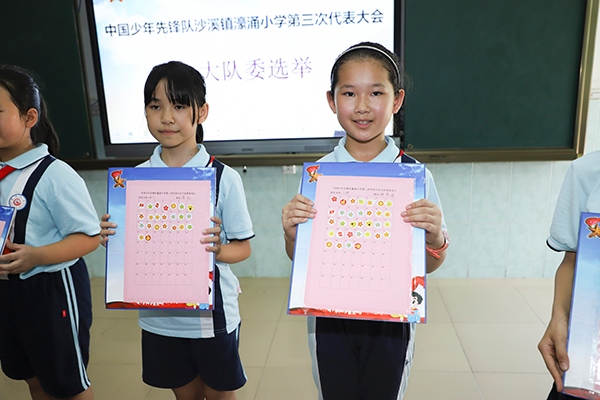 6月30日下午,來自全校各中隊的少先隊員代表、輔導員代表們歡聚在沙溪鎮(zhèn)濠涌小學電教室,召開了中國少年先鋒隊沙溪鎮(zhèn)濠涌小學第三次少先隊代表大會。