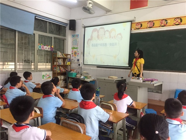 6月28日下午,沙溪鎮(zhèn)龍頭環(huán)學校開展了題為“書香校園、護苗、禁毒、綠書簽活動”的主題隊課。上周五,該校就利用隊課開展了主題為“別讓‘我以為’變成‘我后悔’”的線上毒品預防教育。隊員們已經初步認識了不同的毒品,了解新型毒品的變異。
