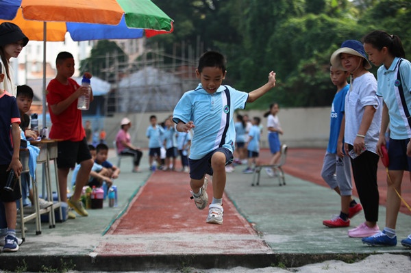 運動會開始前,樂群小學楊明校長為運動會作開幕致辭。在講話中,楊校強調此次運動會也是一堂重要的思品教育課,同學們要有針對性地培養(yǎng)自身的安全意識、集體觀念、自我挑戰(zhàn)、堅毅勇敢的品質以及公共場所衛(wèi)生意識、守秩序和講文明的意識。講話結束后,運動會正式開始。本次田徑運動會分甲(五、六年級)、乙(三、四年級)、丙(一、二年級)三組分別進行比賽,比賽項目分田賽、徑賽,其中田賽是跳遠,徑賽包括1500米、800米、400米、100米、200米、60米、100米欄、80米欄、50米迎面接力10個項目。比賽成績由各班獲得名次所取得分數(shù)的總和來統(tǒng)計。