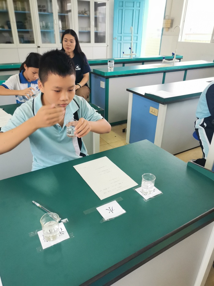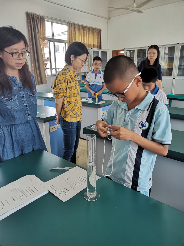 本次的科學(xué)實驗操作主要考核六道試題:“測量不規(guī)則石塊的體積”、“測量液體的溫度”、“電路的研究”、“區(qū)分水、白酒和白醋”、“聲音的產(chǎn)生”以及“讓氣球膨脹起來”??荚嚽?,科學(xué)老師楊蝶老師針對這六個實驗進(jìn)行反復(fù)的指導(dǎo),學(xué)生們也多次在實驗室進(jìn)行操作練習(xí),為本次考試做好了充分的準(zhǔn)備。最后,學(xué)生的考核成績?nèi)窟_(dá)到優(yōu)秀,100%通過了考核。