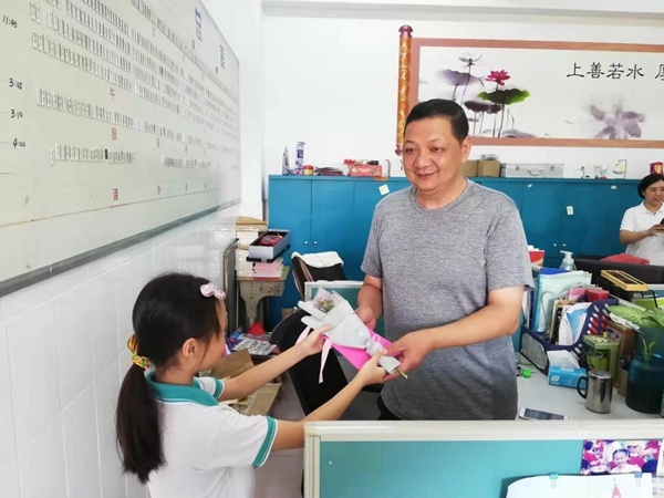鮮花、詩歌、熱茶、掌聲、擁抱……全國的第35個(gè)教師節(jié)如期而至。在這個(gè)屬于教師的節(jié)日里,沙溪鎮(zhèn)中心小學(xué)舉辦慶祝教師節(jié)主題活動,共同為敬愛的老師慶祝節(jié)日。9月10日一大早,同學(xué)們一個(gè)個(gè)來到辦公室,為敬愛的老師獻(xiàn)上一朵鮮花;送上一張親手做的卡片;敬上一杯熱茶;朗誦一首小詩,充滿敬意地對老師們說聲:“老師,教師節(jié)快樂!”孩子們紛紛用自己的方式來頌揚(yáng)教師這一光輝的職業(yè),感恩老師們年復(fù)一年的付出!