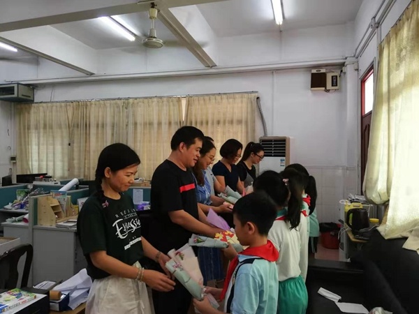 在德育處的組織下,各班的隊(duì)干積極參與到這次的教師節(jié)獻(xiàn)花活動,為老師們送去祝福,充分體現(xiàn)了學(xué)校的人文情懷!讓這個(gè)教師節(jié)過得“簡約而不簡單”。