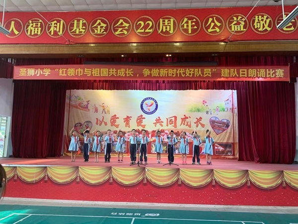 為慶祝新中國成立七十周年暨少先隊建隊七十周年,為弘揚中華民族的傳統(tǒng)美德,豐富學(xué)生的課余生活,提高學(xué)生的朗誦水平,培養(yǎng)孩子們的愛國情操。沙溪鎮(zhèn)圣獅小學(xué)于2019年10月12日下午開展以“我和祖國共成長”為主題的愛國朗誦活動,進(jìn)一步深入實施素質(zhì)教育,豐富校園文化生活,給學(xué)生營造一個濃郁的讀書氛圍。