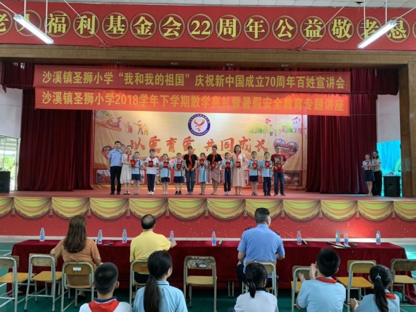 為了帶領(lǐng)師生共同回顧學(xué)期工作,及時(shí)表彰各級(jí)評(píng)選中取得好成績(jī)的師生和班級(jí),指導(dǎo)學(xué)生合理安排假期的學(xué)習(xí)和生活,渡過(guò)一個(gè)愉快、安全而有意義的假期,7月5日上午,圣獅小學(xué)全體師生在學(xué)校禮堂舉行散學(xué)典禮,參加散學(xué)禮的還有圣獅村部分干部、交警、家長(zhǎng)代表。